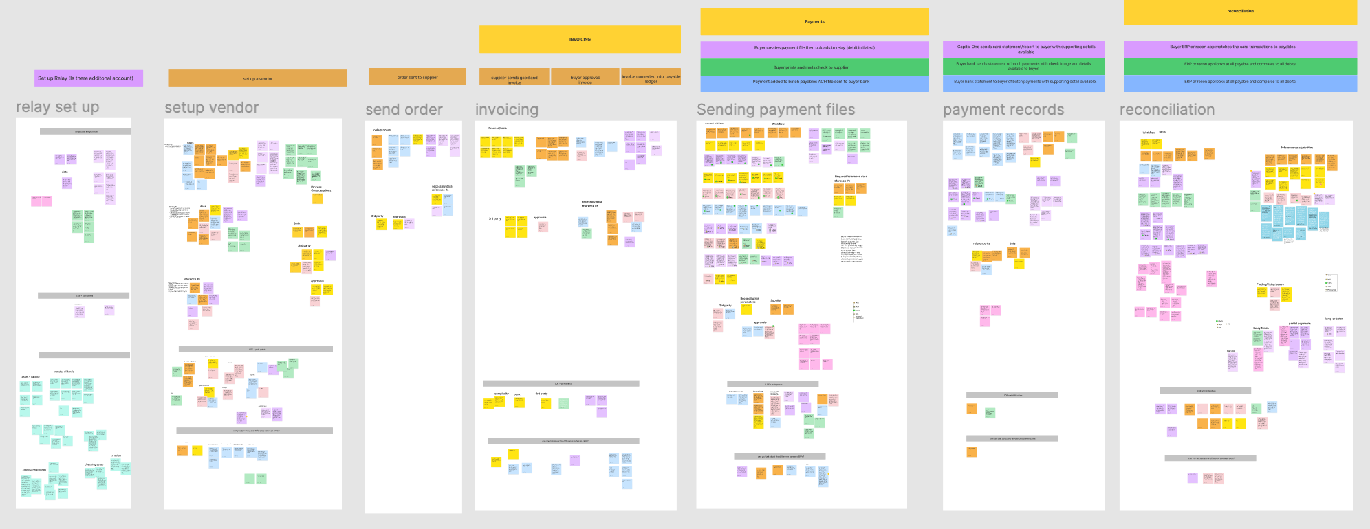 Affinity map interview notes to identify pain points, opportunities, practices, tasks and inputs across software within the paremeters of the accounts payable journey